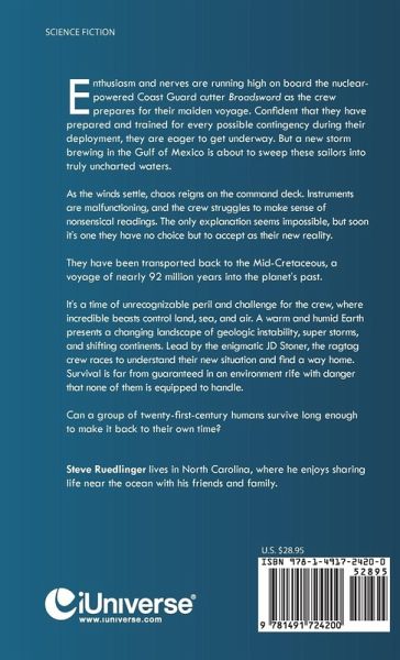Enthusiasm and nerves are running high on board the nuclear-powered Coast Guard cutter Broadsword as the crew prepares for their maiden voyage. Confident that they have prepared and trained for every possible contingency during their deployment, they are eager to get underway. But a new storm brewing in the Gulf of Mexico is about to sweep these sailors into truly uncharted waters. As the winds settle, chaos reigns on the command deck. Instruments are malfunctioning, and the crew struggles to make sense of nonsensical readings. The only explanation seems impossible, but soon it?s one they have no choice but to accept as their new reality. They have been transported back to the Mid-Cretaceous, a voyage of nearly 92 million years into the planet?s past. It?s a time of unrecognizable peril and challenge for the crew, where incredible beasts control land, sea, and air. A warm and humid Earth presents a changing landscape of geologic instability, super storms, and shifting continents. Lead by the enigmatic JD Stoner, the ragtag crew races to understand their new situation and find a way home. Survival is far from guaranteed in an environment rife with danger that none of them is equipped to handle. Can a group of twenty-first-century humans survive long enough to make it back to their own time?