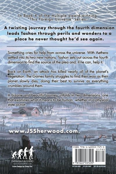 A twisting journey through the fourth dimension leads Tashon through perils and wonders to a place he never thought he'd see again. Something cries for help from across the universe. With Aethera settled into its two new nations, Tashon sets out across the fourth dimension to find the source of the plea and, if he can, help it. Back on Earth, an attack has killed nearly all of the planet's vegetation. The Gaines family struggles to find their way as their planet slowly dies, doing their best to survive as everything crumbles around them. A bizarre and beautiful journey unfolds in two dimensions, one that examines what it means to be human, whether in a physical state or not. EVOLVED PUBLISHING PRESENTS a visionary science fiction adventure, with Book 4 of the 9-book series, "This Foreign Universe." Discover new worlds, new civilizations, and new mysteries from the great unknown.
