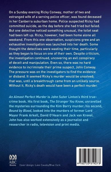 On a Sunday evening Ricky Conway, mother of two and estranged wife of a serving police officer, was found deceased in her Canberra suburban home. Police suspected Ricky had committed suicide, as the day before she had tried but failed. But one detective on the case noticed something unusual, the toilet seat had been left up. Ricky, however, had been home alone all weekend. From this one observation, suspicions grew and an exhaustive investigation was launched into her death. Some thought the detectives were wasting their time, particularly as they began to focus on one of their own. Despite criticism, the investigation continued, uncovering an evil conspiracy of deceit and manipulation. Even so, there was no hard evidence to incriminate their prime suspect, John Conway. the pressure was on the investigators to find the evidence or disband. It seemed Ricky's murder would be unsolved, that was, till a break-through came from an unlikely source. Without it, Ricky's death would have been a perfect murder.