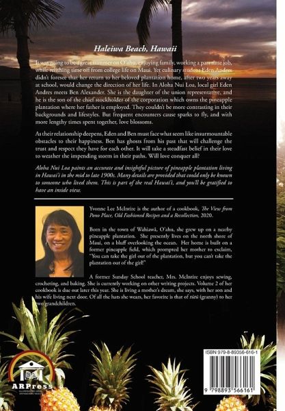 It was going to be a great summer on O'ahu, enjoying, working, a part timr job, while relishing time off from college life on Maui. Yet culinary student Eden Andres didn't foresee that her return to her beloved plantation home, after two years away at school, would change the direction of her life. In Aloha Nui Loa, local girl Eden Andres Meets Ben Alexander. She is the daughter of the union representative, and he is the son of the chief stockholder of the corporation which owns the pineapple plantation where her father is employed. They couldn't be more contrasting in their backgrounds and lifestyles. But frequent encounters cause sparks to fly, and with more lengthy time spent together, love blossoms. As their relationship deepens, Eden and Ben must face what seem like insurmountable obstacles to their happiness. Ben has ghosts from his past that will challenge the trust and respect they have for each other. It will take a steadfast belief in their love to weather the impending storm in their paths. Will love conquer all? Aloha Nui Loa paints an accurate and insight picture of pineapple plantation living in Hawaii in the mid to late 1900s. Manu details are provided that could only be known to someone who lived them. This is part pf the real Hawaii, and you'll be grateful to have an inside view.
