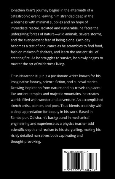 Here's a refined version of the survival story: Jonathan Kran's journey begins in the aftermath of a catastrophic event, leaving him stranded deep in the wilderness with minimal supplies and no hope of immediate rescue. Isolated and vulnerable, he faces the unforgiving forces of nature-wild animals, severe storms, and the ever-present fear of being alone. Each day becomes a test of endurance as he scrambles to find food, fashion makeshift shelters, and learn the ancient skill of creating fire. As he struggles to survive, he slowly begins to master the art of wilderness living. Jonathan endures physical injuries and battles the weight of loneliness, but his determination never wavers. With every hardship, he gains crucial survival knowledge-learning to hunt, craft tools from his surroundings, and navigate the landscape by the stars. His bond with the land strengthens, and over time, he discovers how to exist in harmony with the natural world. As the seasons pass, Jonathan builds a permanent shelter, relying on the wilderness for food, materials, and medicinal plants. What began as a desperate fight for survival transforms into a life of self-reliance and peace. The once-threatening wilderness becomes his home, reshaping him from a lost man into someone profoundly connected to the earth, confident in his ability to thrive alone.