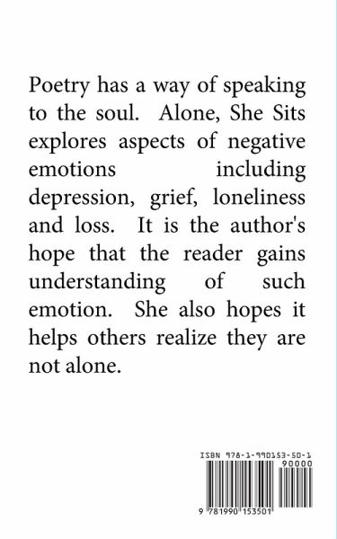 Poetry has a way of speaking to the soul. Alone, She Sits explores aspects of negative emotions including depression, grief, loneliness and loss. It is the author's hope that the reader gains understanding of such emotion. She also hopes it helps others realize they are not alone.