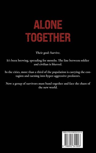 Their goal: Survive.It's been brewing, spreading for months. Now the line between soldier and civilian is blurred.In the cities, more than a third of the population is carrying the contagion and turning into hyper-aggressive predators, with their family, friends, and neighbors as their prey.Now a group of survivors must band together and face the chaos of the new world.Book 1 of the Alone Together series