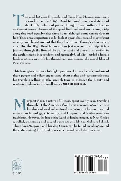 The road between Espanola and Taos, New Mexico, commonly referred to as the "High Road to Taos," covers a distance of about fifty miles and passes through many northern frontier settlement towns. Because of the speed limit and road conditions, a trip along this road usually takes three hours although some drivers do it in less. They drive serpentine roads, look at quaint houses and magnificent scenery, and depart content that they have driven through a fascinating area. But the High Road is more than just a scenic road trip; it is a journey through the lives of the people, past and present, who--tied to the earth, fiercely independent, and staunchly Catholic--settled a hostile land, created a new life for themselves, and became the moral fiber of New Mexico.This book gives readers a brief glimpse into the lives, beliefs, and arts of these people and offers suggestions about sights and accommodations for travelers willing to take enough time to discover the beauty and mysteries hidden in the small towns "Along the High Road."