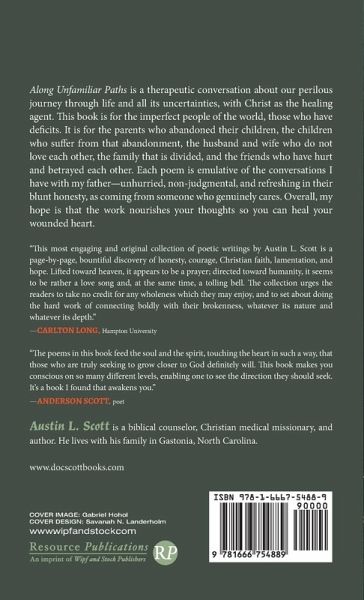 Along Unfamiliar Paths is a therapeutic conversation about our perilous journey through life and all its uncertainties, with Christ as the healing agent. This book is for the imperfect people of the world, those who have deficits. It is for the parents who abandoned their children, the children who suffer from that abandonment, the husband and wife who do not love each other, the family that is divided, and the friends who have hurt and betrayed each other. Each poem is emulative of the conversations I have with my father--unhurried, non-judgmental, and refreshing in their blunt honesty, as coming from someone who genuinely cares. Overall, my hope is that the work nourishes your thoughts so you can heal your wounded heart.