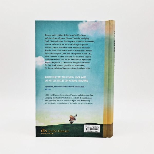 Simons wohl größter Ruhm ist seine Flucht vor aufgebrachten Alpakas. Die ging auf YouTube viral. Aber die Geschichte, die die ganze Welt über ihn erzählt, ist eine andere - eine, die er unbedingt vergessen möchte. Zwei Jahre sind seitdem vergangen. Jetzt zieht er mit seinen Eltern in die National Quiet Zone, den einzigen Ort in den USA, in dem es kein Internet gibt. Sein Dad beginnt dort als Diakon, seine Mutter arbeitet als Bestatterin, und endlich findet Simon auch neue Freunde: die wunderbare Agate vom Angoraziegenhof und Kevin mit den grünen Haaren. Zusammen faken sie Signale aus dem All, verwirren die ortsansässigen Wissenschaftler und sorgen für eins: dass Simon ein neues Leben hat.