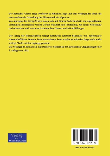 Der Botaniker Gustav Hegi, Professor in München, legte mit dem vorliegenden Buch die erste umfassende Darstellung der Pflanzenwelt der Alpen vor.