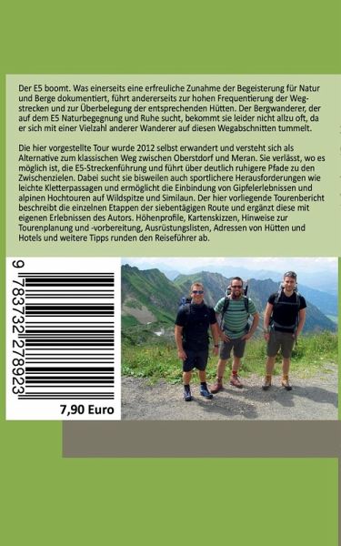 Der E5 boomt. Was einerseits eine erfreuliche Zunahme der Begeisterung für Natur und Berge dokumentiert, führt andererseits zur hohen Frequentierung der Wegstrecken und zur Überbelegung der entsprechenden Hütten. Der Bergwanderer, der auf dem E5 Naturbegegnung und Ruhe sucht, bekommt sie leider nicht allzu oft, da er sich mit einer Vielzahl anderer Wanderer auf diesen Wegabschnitten tummelt. Die hier vorgestellte Tour wurde 2012 selbst erwandert und versteht sich als Alternative zum klassischen Weg zwischen Oberstdorf und Meran. Sie verlässt, wo es möglich ist, die E5-Streckenführung und führt über deutlich ruhigere Pfade zu den Zwischenzielen. Dabei sucht sie bisweilen auch sportlichere Herausforderungen wie leichte Kletterpassagen und ermöglicht die Einbindung von Gipfelerlebnissen und alpinen Hochtouren auf Wildspitze und Similaun. Der hier vorliegende Tourenbericht beschreibt die einzelnen Etappen der siebentägigen Route und ergänzt diese mit eigenen Erlebnissen des Autors. Höhenprofile, Kartenskizzen, Hinweise zur Tourenplanung und -vorbereitung, Ausrüstungslisten, Adressen von Hütten und Hotels und weitere Tipps runden den Reiseführer ab.