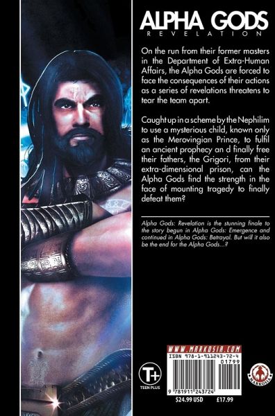 On the run from their former masters in the Department of Extra-Human Affairs, the Alpha Gods are forced to face the consequences of their actions as a series of revelations threatens to tear the team apart. Caught up in a scheme by the Nephilim to use a mysterious child, known only as the Merovingian Prince, to fulfil an ancient prophecy and finally free their fathers, the Grigori, from their extra-dimensional prison, can the Alpha Gods find the strength in the face of mounting tragedy to finally defeat them? Alpha Gods: Revelation is the stunning finale to the story begun in Alpha Gods: Emergence and continued in Alpha Gods: Betrayal and will sow the seeds of future Alpha Gods adventures!