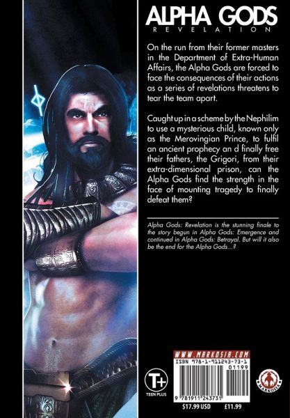 On the run from their former masters in the Department of Extra-Human Affairs, the Alpha Gods are forced to face the consequences of their actions as a series of revelations threatens to tear the team apart. Caught up in a scheme by the Nephilim to use a mysterious child, known only as the Merovingian Prince, to fulfil an ancient prophecy and finally free their fathers, the Grigori, from their extra-dimensional prison, can the Alpha Gods find the strength in the face of mounting tragedy to finally defeat them? Alpha Gods: Revelation is the stunning finale to the story begun in Alpha Gods: Emergence and continued in Alpha Gods: Betrayal and will sow the seeds of future Alpha Gods adventures!