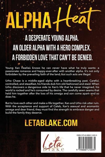 A desperate young alpha. An older alpha with a hero complex. A forbidden love that can't be denied. Young Xan Heelies knows he can never have what he truly wants: a passionate romance and happy-ever-after with another alpha. It's not only forbidden by the prevailing faith of the land, but such acts are illegal. Urho Chase is a middle-aged alpha with a heartbreaking past. Careful, controlled, and steadfast, his friends dub him old-fashioned and staid. When Urho discovers a dangerous side to Xan's life that he never imagined, his world is rocked and he's consumed by desire. The carefully sewn seams that held him together after the loss of his omega and son come apart-and so does he. But to love each other and make a life together, Xan and Urho risk utter ruin. With the acceptance and support of Caleb, Xan's asexual and aromantic omega and dear friend, they must find the strength to embrace danger and build the family they deserve. This gay romance novel by Leta Blake is the second in the Slow Heat universe. It's 130,000 words, with a strong happy ending and a well-crafted, non-shifter Omegaverse. It features alphas, betas, omegas, male pregnancy, heat, and knotting. No cheating. Content warning for brief sexual violence.
