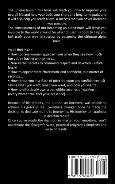 The unique laws in this book will teach you how to improve your overall life and help you reach your short and long term goals, and it will also help you reach a level a success that you never dreamed was possible. The consequences of not becoming an alpha male will leave you invisible to the world around. So why not use this book to help you fast track your way to success by becoming the ultimate alpha male. You'll find inside:How to have women approach you when they see how much fun you're having with others... Non-verbal secrets to command respect and devotion - effortlessly! How to appear more charismatic and confident, in a matter of seconds... How to put you in a state of utter freedom and confidence: just saying what you want, when you want, and how you want! How to effortlessly own a bar within seconds of walking in (every women will feel your presence)... Because of his timidity, the author, an introvert, was unable to achieve his goals in life. Everything changed once he made the decision to dedicate his life to improving. His journey to happiness is described here. Once you've made the decision to master your emotions, you'll appreciate this straightforward, practical program's simplicity and ease of results.