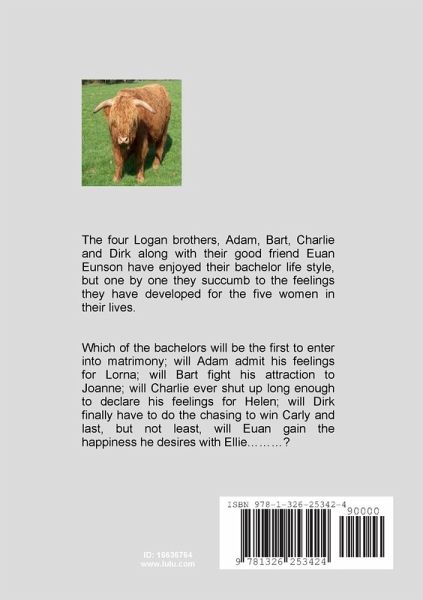 The four Logan brothers, Adam, Bart, Charlie and Dirk along with their good friend Euan Eunson have enjoyed their bachelor life style, but one by one they succumb to the feelings they have developed for the five women in their lives. Which of the bachelors will be the first to enter into matrimony; will Adam admit his feelings for Lorna; will Bart fight his attraction to Joanne; will Charlie ever shut up long enough to declare his feelings for Helen; will Dirk finally have to do the chasing to win Carly and last, but not least, will Euan gain the happiness he desires with Ellie.........?