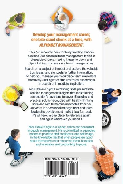Develop your management career, one bite-sized chunk at a time, with ALPHABET MANAGEMENT. In this A-Z resource book, for busy frontline leaders, 200 essential team management topics are presented in digestible chunks, easy to dip-in and dip-out at key moments in a team manager's day. Search on a subject of interest and explore the valuable tips, ideas, and signposts to further information, to help you manage your workplace team even more effectively. Just right for time-restricted supervisors in search of immediate inspiration. Nick Drake-Knight's refreshing style presents the frontline management insights that most training courses don't have time to cover. Engaging and practical solutions sprinkled with humorous anecdotes from his 40 years in operational management and team leadership development, as well as numerous cartoons, make this a fun read. It's all here, in one place, available to reference time and time again just when you need it.