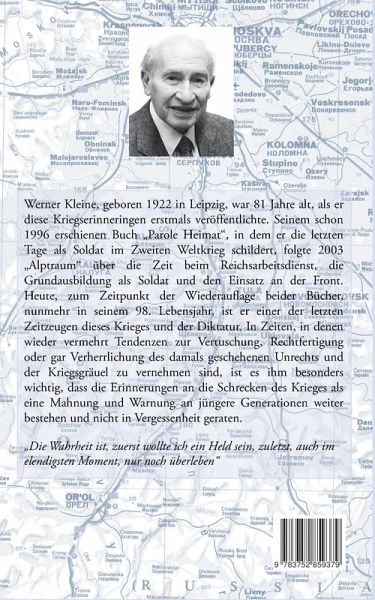 Werner Kleine, geboren 1922 in Leipzig, war 81 Jahre alt, als er diese Kriegserinneringen erstmals veröffentlichte. Seinem schon 1996 erschienen Buch "Parole Heimat", in dem er die letzten Tage als Soldat im Zweiten Weltkrieg schildert, folgte 2003 "Alptraum" über die Zeit beim Reichsarbeitsdienst, die Grundausbildung als Soldat und den Einsatz an der Front. Heute, zum Zeitpunkt der Wiederauflage beider Bücher, nunmehr in seinem 98. Lebensjahr, ist er einer der letzten Zeitzeugen dieses Krieges und der Diktatur. In Zeiten, in denen wieder vermehrt Tendenzen zur Vertuschung, Rechtfertigung oder gar Verherrlichung des damals geschehenen Unrechts und der Kriegsgräuel zu vernehmen sind, ist es ihm besonders wichtig, dass die Erinnerungen an die Schrecken des Krieges als eine Mahnung und Warnung an jüngere Generationen weiter bestehen und nicht in Vergessenheit geraten."Die Wahrheit ist, zuerst wollte ich ein Held sein, zuletzt, auch im elendigsten Moment, nur noch überleben"