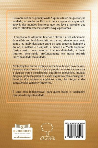 ¿Alquimia Interior¿ explora passo a passo os mundos interiores, mapeando vários aspectos do desenvolvimento humano. Neste trajeto a autora explica a verdadeira função dos chakras, dos sete raios e dos sete corpos e propõe numerosos exercícios e técnicas como visualização, equilíbrio energético, intuição dirigida, proteção psíquica e cura alquímica para conseguir o domínio dos centros energéticos sutis das forças e das conexões dos campos vibratórios.