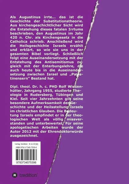 Augustinus schreibt im Jahr 420 n. Chr. die Enterbungslehre (Substitution) als Kirchengesetz in die "Catholica". Wie kam er zu dieser Auffassung, was lehrt uns die Bibel tatsächlich über die Heilsgeschichte Israels und welche Auswirkungen hat die Substitutionstheorie bis heute auf den Antisemitismus?