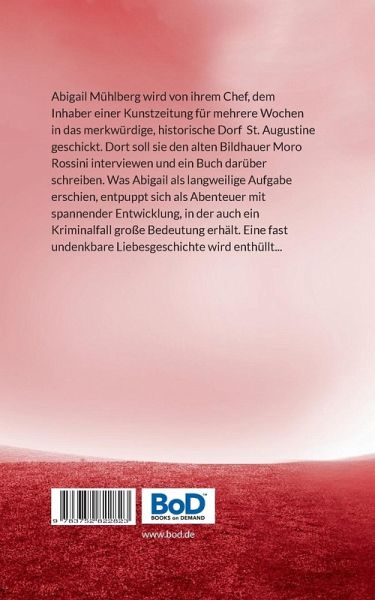 Abigail Mühlberg wird von ihrem Chef, dem Inhaber einer Kunstzeitung für mehrere Wochen in das merkwürdige, historische Dorf St. Augustine geschickt. Dort soll sie den alten Bildhauer Moro Rossini interviewen und ein Buch darüber schreiben. Was Abigail als langweilige Aufgabe erschien, entpuppt sich als Abenteuer mit spannender Entwicklung, in der auch ein Kriminalfall große Bedeutung erhält. Eine fast undenkbare Liebesgeschichte wird enthüllt...