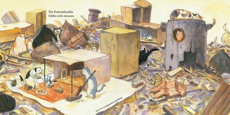 Früher war die Insel der Katzen ein schönes, grünes Plätzchen. Doch dann legt eines Tages ein Schiff an und die Katzen bekommen ein Angebot, dem sie nicht widerstehen können. Ein Vertrag wird unterschrieben und die Insel bald darauf mit Futter überhäuft. Doch mit dem Futter kommt auch der Müll. Eine Katzenfamilie beginnt, ihre einst grüne Insel zu vermissen. Eines Tages hat sie eine Idee, die alles verändert.