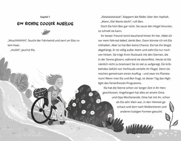 Ela ist fasziniert von Planeten, Sternen und Raketen. Ihr Traum? Als Astronautin ins Weltall fliegen! Doch irgendwie glauben nicht alle daran, dass Ela das schaffen kann. Und zwar nur, weil sie mit Rollstuhl lebt.