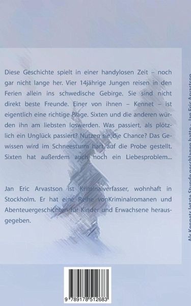 Diese Geschichte spielt in einer handylosen Zeit, nochgar nicht lange her. Vier 14jährige Jungen reisen in denFerien allein ins schwedische Gebirge. Sie sind nichtdirekt beste Freunde. Einer von ihnen, Kennet, isteigentlich eine richtige Plage. Sixten und die anderen würdenihn am liebsten loswerden. Was passiert, als plötzlichein Unglück passiert? Nutzen sie die Chance? Das Gewissenwird im Schneesturm hart auf die Probe gestellt.Sixten hat außerdem auch noch ein Liebesproblem...