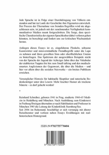 Jede Sprache ist in Folge einer Durchdringung von Völkern ent-standen und hat im Laufe der Geschichte ihre Eigenarten entwickelt. Der Prozess der Übernahme von fremden Begriffen wird nie abgeschlossen sein, ist jedoch mit der zunehmenden Verfügbarkeit kommunikativer Medien rasant fortgeschritten. Die Sorge, dass spezifische Charakteristika der eigenen Sprachkultur dabei verloren gehen könnten, ist berechtigt und fordert uns zur kritischen Wachsamkeit heraus. Anliegen dieses Essays ist es, eingefahrene Floskeln, seltsame Kunstwörter und missverständliche Fremdbegriffe unter die Lupe zu nehmen und ihren gewollten Sinn oder oberflächlichen Unsinn zu hinterfragen. Das Spektrum der ausgewählten Beispiele reicht von der Sprache der Jugend der Achtziger Jahre über das Vokabular der etablierten Yuppies bis hin zum Small talking und den modisch-smarten Anglizismen der Gegenwart, die über die Medien - und hier vor allem über die sozialen Netzwerke - ein breites Publikum erreichen.Vorsorglicher Hinweis für habituelle Skeptiker und notorische Be-denkenträger unter den Lesern: Mehr feuchter Humor als trockene Materie - es darf gelacht werden!