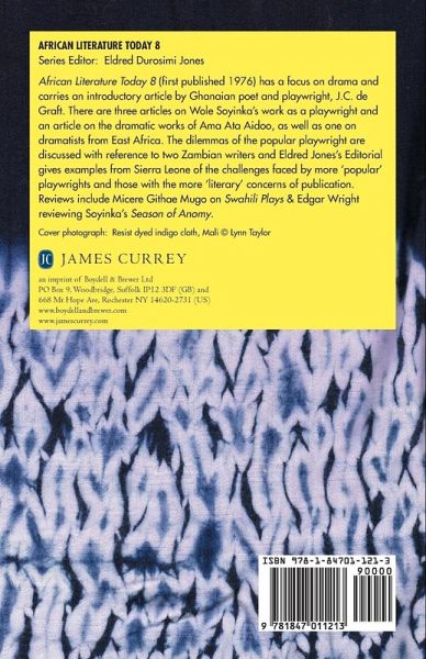 First published in 1976, this volume has a focus on African drama and carries an introductory article by Ghanaian poet and playwright J.C. de Graft. There are three articles on Wole Soyinka's work as a playwright and an article on the dramatic works of Ama Ata Aidoo, as well as an article on four dramatists from East Africa. The dilemmas of the popular playwright are discussed in an article on two Zambian writers and Eldred Jones's Editorial gives examples from Sierra Leone of the challenges faced by more "popular" playwrights and those with the more "literary" concerns of publication.