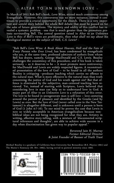 For centuries, the world of professing Christendom has faced countless contests regarding the nature of God's justice and love, as well as the doctrines of Heaven and Hell. Rob Bell's book, Love Wins, is just another illustration of this reality. The entire protest revolving around Bell's book was fairly dramatic, however, it produced more smoke and heat than productive light. Despite the loud complaints leveled against the controversial author of Love Wins, what he unveiled in his book should have produced little surprise. There is a very important and untold story behind the whole Bell debate that must be passed on for the sake of future generations. The mystery and oddity of this conflict has revealed a systemic problem - one that is much greater than the premature protests surrounding Rob Bell. Altar to an Unknown Love addresses the untold story which stands behind the scenes of Bell's particular views of theology. What the reader may find surprising is that Bell's teachings are remarkably familiar, and have even been promoted, whether directly or indirectly, by some of Bell's loudest critics. All of this points to a great opportunity for the church in the present day. The conflict surrounding Rob Bell actually supplies an opportunity to rediscover our need to go back to the Scriptures themselves, rather than to the teachings and traditions of men. This is an opportunity for the church to rediscover the priority of Sola Scriptura, now, and for the generations to come.