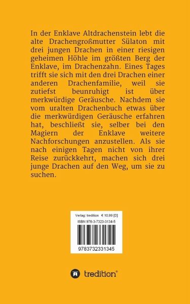 In der Enklave Altdrachenstein lebt die alte Drachengroßmutter der Golddrachenfamilie Sülaton mit drei jungen Drachen in einer riesigen geheimen Höhle im größten Berg der Enklave, dem Drachenzahn. Eines Tages trifft sie sich mit den drei Drachen einer anderen Drachenfamilie, weil sie zutiefst beunruhigt ist über merkwürdige Geräusche und Geschehnisse in der Enklave. Nachdem sie vom uralten Drachenbuch etwas über die merkwürdigen Geräusche erfahren hat, beschließt sie, selber bei den Magiern der Enklave weitere Nachforschungen anzustellen. Als sie nach einigen Tagen nicht von ihrer Reise…mehr