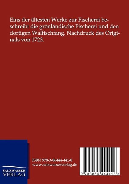 Eins der ältesten Werke zur Fischerei beschreibt die grönländische Fischerei und den dortigen Walfischfang. Nachdruck des Originals von 1723.