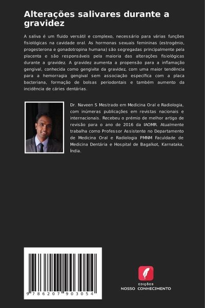 A saliva é um fluido versátil e complexo, necessário para várias funções fisiológicas na cavidade oral. As hormonas sexuais femininas (estrogénio, progesterona e gonadotropina humana) são segregadas principalmente pela placenta e são responsáveis pela maioria das alterações fisiológicas durante a gravidez. A gravidez aumenta a propensão para a inflamação gengival, conhecida como gengivite da gravidez, com uma maior tendência para a hemorragia gengival sem associação específica com a placa bacteriana, formação de bolsas periodontais e também aumento da incidência de cáries dentárias.