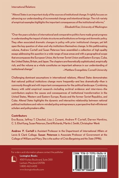 Combining theory with solid empirical research-including archival evidence and interviews-the contributors explore the causes and consequences of institutional transformation in the United States, Western and Eastern Europe, Russia and the former Soviet Republics, and Cuba. Altered States highlights the dynamic and interactive relationship between national political institutions and reform-minded policy entrepreneurs, a perspective that will interest scholars and policy makers alike.