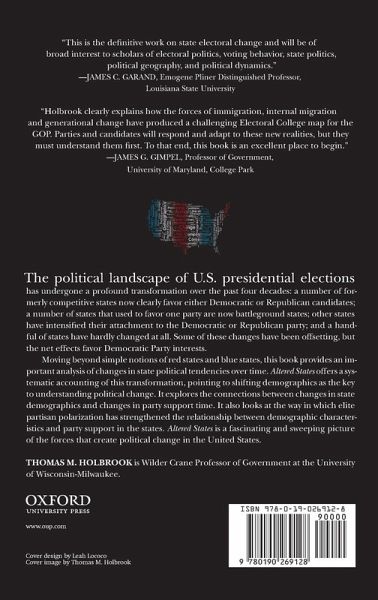 The 2012 presidential elections represented the second consecutive defeat for the Republican Party, and the fourth defeat out of the last six presidential elections. In recent years both Republican and Democratic strategists and pundits have spoken of an emerging Democratic Party "lock" on the Electoral College and speculated that even in the wake of Republican victories in Congress, presidential candidates are still at a major disadvantage due to the party's increasing demographic and geographic isolation. This prediction flies in the face of population shifts of the last several decades from Democratic regions (Upper-Midwest and Northeast) to Republican-leaning regions (South and Southwest); at the same time, it seems to follow from demographic changes favoring an increase in the minority vote. In fact, there is an initiative to convert Texas to a Democratic state by mobilizing Latino and Black voters. In Altered States, Thomas Holbrook looks at electoral change in presidential elections since 1972, documenting the magnitude, direction, and consequences of changes in party support in the states. He finds that the Democrats do not have a "lock" on the Electoral College, but that their position has improved dramatically over the past forty years in a number of formerly competitive or Republican-leaning states in the Northeast, Southeast, and Southwest. Republican candidates have made many fewer gains, mostly improving their position in "misplaced," formerly Democratic states, such as Kentucky and West Virginia, or in already deeply Republican states in the Plains and Mountain West. Holbrook looks at the ways that changes in the racial and ethnic composition of the state electorates, migratory patterns from large Democratic states to Republican-leaning states, and changes in the public's level of education and occupational status, state party identification, and ideology drive these changes. Additionally, he explores the extent to which the Republican "problem" stems from the geographic concentration of party support. While Democratic concentration in major metropolitan areas tends to put them at a disadvantage in House races, as Republican votes increasingly are concentrated in fewer states where they win by wider margins, they may be "wasting" more Electoral College votes than Democrats, whose supporters are more efficiently distributed.