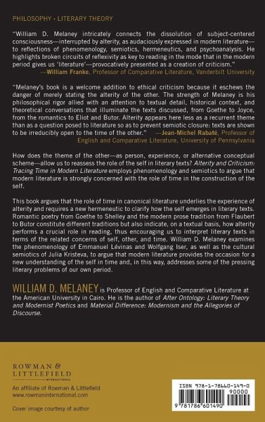 1. Introduction: Alterity in Literary Texts Part I: Romanticism as Beginning Alterity 2. Time in Goethe's Faust I: A Poetics of Disruption 3. Reassessing the Byronic Sublime: A Critique of Pure Autonomy 4. Coleridge as Poet-Critic: Imagination and Other Life 5. Shelley and the Myth of Poetry: The 'Return' of Metaphor Part II: Alterity and the Prose Tradition 6. Flaubert's Dislocations: Rethinking a Crisis in Reading 7. Eliot and the Uses of Dante: Thresholds of the Unsayable 8. Joyce and Metaphor in Excess: Art, Encounter, Semiosis 9. Butor's Rite of Passage: Reference and Repetition Part III: Critical Discourses of Alterity 10. Lévinas and Psychoanalysis: Engaging Alterity in Language 11. Iser's Aesthetic Phenomenology: Reading, Time and World 12. Alterity and Future Criticism: Modern Literature in Context Bibliography Index