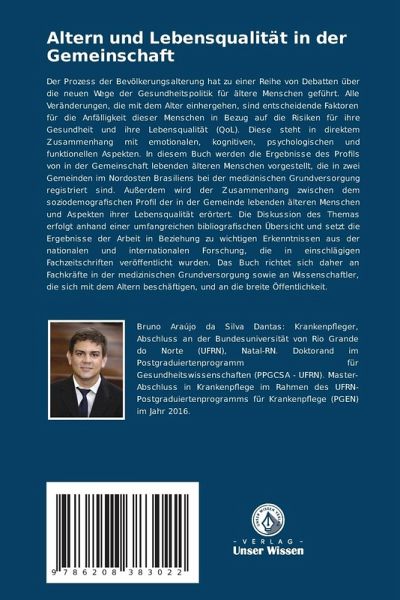 Der Prozess der Bevölkerungsalterung hat zu einer Reihe von Debatten über die neuen Wege der Gesundheitspolitik für ältere Menschen geführt. Alle Veränderungen, die mit dem Alter einhergehen, sind entscheidende Faktoren für die Anfälligkeit dieser Menschen in Bezug auf die Risiken für ihre Gesundheit und ihre Lebensqualität (QoL). Diese steht in direktem Zusammenhang mit emotionalen, kognitiven, psychologischen und funktionellen Aspekten. In diesem Buch werden die Ergebnisse des Profils von in der Gemeinschaft lebenden älteren Menschen vorgestellt, die in zwei Gemeinden im Nordosten Brasiliens bei der medizinischen Grundversorgung registriert sind. Außerdem wird der Zusammenhang zwischen dem soziodemografischen Profil der in der Gemeinde lebenden älteren Menschen und Aspekten ihrer Lebensqualität erörtert. Die Diskussion des Themas erfolgt anhand einer umfangreichen bibliografischen Übersicht und setzt die Ergebnisse der Arbeit in Beziehung zu wichtigen Erkenntnissen aus der nationalen und internationalen Forschung, die in einschlägigen Fachzeitschriften veröffentlicht wurden. Das Buch richtet sich daher an Fachkräfte in der medizinischen Grundversorgung sowie an Wissenschaftler, die sich mit dem Altern beschäftigen, und an die breite Öffentlichkeit.