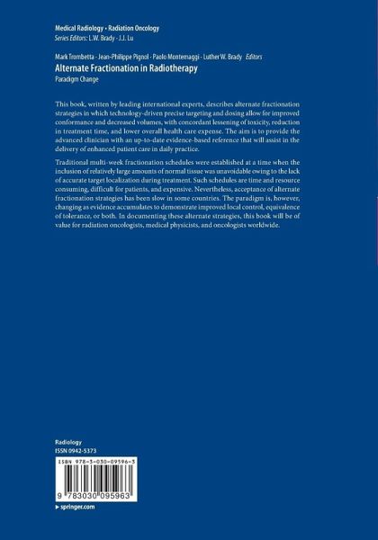 Traditional multi-week fractionation schedules were established at a time when the inclusion of relatively large amounts of normal tissue was unavoidable owing to the lack of accurate target localization during treatment. Such schedules are time and resource consuming, difficult for patients, and expensive. Nevertheless, acceptance of alternate fractionation strategies has been slow in some countries. The paradigm is, however, changing as evidence accumulates to demonstrate improved local control, equivalence of tolerance, or both. In documenting these alternate strategies, this book will be of value for radiation oncologists, medical physicists, and oncologists worldwide.