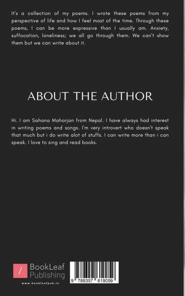 It's a collection of my poems. I wrote these poems from my perspective of life and how I feel most of the time. Through these poems, I can be more expressive than I usually am. Anxiety, suffocation, loneliness; we all go through them. We can't show them but we can write about it.
