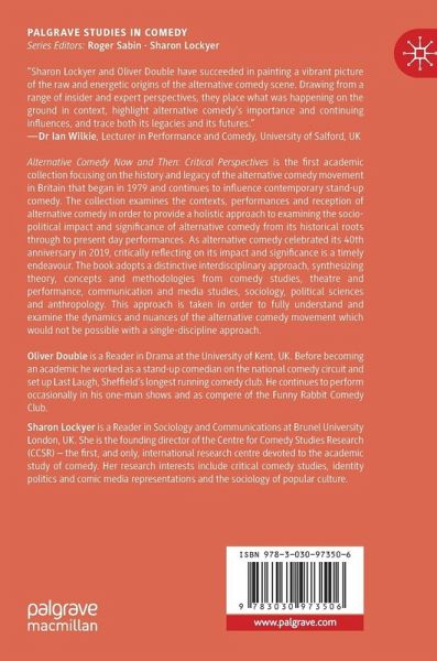 Alternative Comedy Now and Then: Critical Perspectives is the first academic collection focusing on the history and legacy of the alternative comedy movement in Britain that began in 1979 and continues to influence contemporary stand-up comedy. The collection examines the contexts, performances and reception of alternative comedy in order to provide a holistic approach to examining the socio-political impact and significance of alternative comedy from its historical roots through to present day performances. As alternative comedy celebrated its 40th anniversary in 2019, critically reflecting on its impact and significance is a timely endeavour. The book adopts a distinctive interdisciplinary approach, synthesizing theory, concepts and methodologies from comedy studies, theatre and performance, communication and media studies, sociology, political sciences and anthropology. This approach is taken in order to fully understand and examine the dynamics and nuances of the alternative comedy movement which would not be possible with a single-discipline approach.