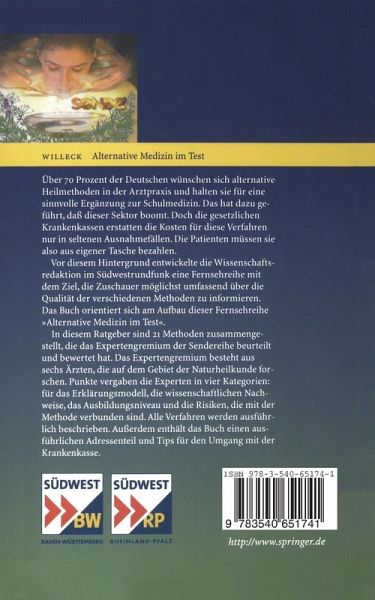Die Wissenschaftsredaktion im SWR entwickelte eine Fernsehreihe zum Thema Alternative Medizin im Test. Ziel war es, die Zuschauer möglichst umfassend über die Qualität der verschiedenen Heilmethoden zu informieren. Das Buch orientert sich am Aufbau dieser Fernsehreihe. Hierin sind 21 Methoden zusammengestellt, die das Eypertengremium der Sendereihe beurteilt und bewertet hat. Das Gremium besteht aus 6 Ärzten, die auf dem Gebiet der Naturheilkunde forschen. Alle Verfahren werden beschrieben. Punkte vergaben die Experten in 4 Kategorien: für das Erklärungsmodell, die wissenschaftlichen Nachweise, das Ausbildungsniveau und die Risiken, die mit der Methode verbunden sind. Außerdem enthält das Buch einen ausführlichen Adressenteil und Tips für den Umgang mit der Krankenkasse.