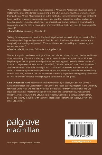 The diverse settings of Islam and Islamic culture, circumscribed around issues of performativity of Islam and identity construction in the diasporic space are unpacked in this volume. In addition, this work analyzes specific practices and performances, starting with the multifaceted nature of Islam and the problematic concepts of "Sunni/Sufi," "Muslim woman," "race," and "blackness." The book reveals that exile, nostalgia, and racial/ethnic differences within Islam and the wider UK community underpin the performativity of Muslimness of the Sudanese women living in West Yorkshire, and reiterates the importance of moving beyond the homogeneity of the idea of "Muslim woman" towards investigating the complexities of this group.