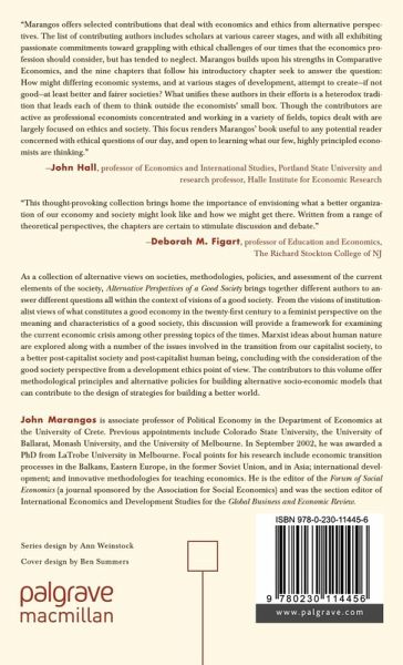 As a collection of alternative views on societies, methodologies, policies and assessment of the current elements of the society, Alternative Perspectives on a Good Society brings together different authors answering different questions all within the context of visions of a good society.