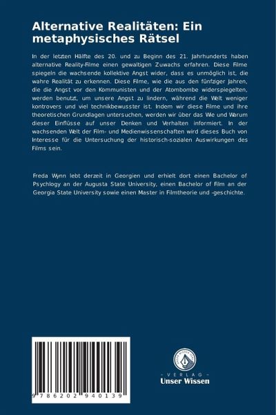 In der letzten Hälfte des 20. und zu Beginn des 21. Jahrhunderts haben alternative Reality-Filme einen gewaltigen Zuwachs erfahren. Diese Filme spiegeln die wachsende kollektive Angst wider, dass es unmöglich ist, die wahre Realität zu erkennen. Diese Filme, wie die aus den fünfziger Jahren, die die Angst vor den Kommunisten und der Atombombe widerspiegelten, werden benutzt, um unsere Angst zu lindern, während die Welt weniger kontrovers und viel technikbewusster ist. Indem wir diese Filme und ihre theoretischen Grundlagen untersuchen, werden wir über das Wie und Warum dieser Einflüsse auf unser Denken und Verhalten informiert. In der wachsenden Welt der Film- und Medienwissenschaften wird dieses Buch von Interesse für die Untersuchung der historisch-sozialen Auswirkungen des Films sein.