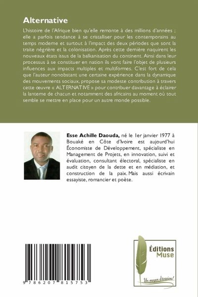 L'histoire de l'Afrique bien qu'elle remonte à des millions d'années ; elle a parfois tendance à se cristalliser pour les contemporains au temps moderne et surtout à l'impact des deux périodes que sont la traite négrière et la colonisation. Après cette dernière naquirent les nouveaux états issus de la balkanisation du continent. Ainsi dans leur processus à se constituer en nation ils vont faire l'objet de plusieurs influences aux impacts multiples et multiformes. C'est fort de cela que l'auteur nonobstant une certaine expérience dans la dynamique des mouvements sociaux, propose sa modeste contribution à travers cette oeuvre « ALTERNATIVE » pour contribuer davantage à éclairer la lanterne de chacun et notamment des africains au moment où tout semble se mettre en place pour un autre monde possible.