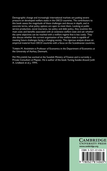 Demographic change and increasingly international markets are putting severe pressure on developed welfare states in the OECD countries. The contributors to this book assess the magnitude of these challenges and discuss in depth, and in concrete terms, what policy options are open to meet them. Looking at public service production, social insurance, tax policy and debt policy, they examine the main costs and benefits associated with an extensive welfare state and ask whether the same objectives can be reached with a welfare regime that is less costly. They also discuss whether the current organisation of the welfare state is capable of meeting future challenges facing a changing society. This rigorous analysis draws on empirical material from OECD countries with a focus on the Scandinavian countries.
