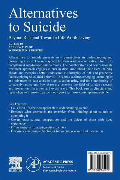 Alternatives to Suicide: Beyond Risk and Toward a Life Worth Living demonstrates how fostering resilience and a desire for life can broaden and advance an understanding of suicide. The book summarizes the existing literature and outlines a new focus on the dynamic interplay of risk and resilience that leads to a life-focus approach to suicide prevention. It calls for a treatment approach that enhances the opportunity to collaboratively engage clients in discussion about their lives. Providing a new perspective on how to approach suicide prevention, the book also lays out key theories on resilience and the interplay of risk and protective factors.