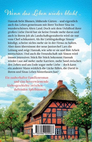 Wenn das Leben wieder blüht¿... Hannah liebt Blumen, blühende Gärten - und eigentlich auch das Leben gemeinsam mit ihrer Tochter Sina im wunderschönen Alten Land. Doch seit dem Unfalltod ihrer großen Liebe David hat sie keine Freude mehr daran und auch in ihrem Job als Landschaftsgestalterin wird sie nur vom Chef schikaniert. Als ihr Lieblingskollege Simon kündigt, scheint nichts mehr sie in der Firma zu halten. Aber dann übernimmt der neue Juniorchef Lars die Leitung und zeigt Hannah, wie sehr er sie und ihre Arbeit wertschätzt. Und auch die Freundschaft mit Simon wird immer intensiver. Stück für Stück bekommt Hannah wieder Lust auf mehr: mehr Karriere, mehr Sand zwischen den Zehen und am Ende sogar mehr Liebe - doch kann ein anderer Mann wirklich die Lücke füllen, die David in ihrem und Sinas Leben hinterlassen hat? Ein zauberhafter Familienroman und eine herzerwärmende Liebesgeschichte zwischen duftenden Apfelbäumen.