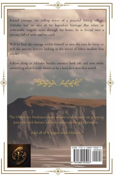 Raised amongst the rolling waves of a peaceful fishing village, Althalos had no idea of his legendary heritage. But when an unbearable tragedy tears through his home, he is forced into a journey full of strife and betrayal. The Observant Darkness series whisks readers away on a gripping journey as Althalos battles enemies both old and new while unraveling what it truly means to be a hero in a merciless world. Will he find the courage within himself to save the ones he loves, or will the ancient horrors lurking in the world of Iobos swallow him whole? Follow along as Althalos embarks on an epic quest full of danger, discovery, and destiny.
