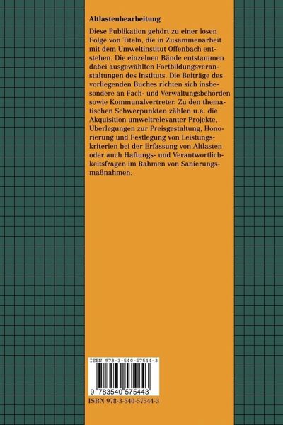 Diese Publikation gehört zu einer losen Folge von Titeln, die in Zusammenarbeit mit dem Umweltinstitut Offenbach entstehen. Die einzelnen Bände entstammen dabei ausgewählten Fortbildungsveranstaltungen des Instituts. Die Beiträge des vorliegenden Buches richten sich insbesondere an Fach- und Verwaltungsbehörden sowie Kommunalvertreter. Zu den thematischen Schwerpunkten zählen u. a. die Akquisition umweltrelevanter Projekte, Überlegungen zur Preisgestaltung, Honorierung und Festlegung von Leistungskriterien bei der Erfassung von Altlasten oder auch Haftungs- und Verantwortlichkeitsfragen im Rahmen von Sanierungsmaßnahmen.