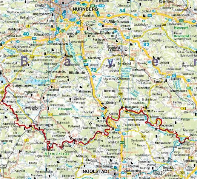 In 15 Etappen führt der Altmühltal-Panoramaweg vom fränkischen Seenland in Gunzenhausen bis zum Donaudurchbruch in Kelheim. Er verläuft gemütlich entlang der Altmühl und unterwegs lassen sich die Spuren vorchristlicher Höhlen, Keltenschanzen und römischer Befestigungsanlagen bestaunen. Mit etwas Glück findet man sogar Versteinerungen von Jahrmillionen alten Ammoniten. Die Wege sind gesäumt von mittelalterlichen Burgen und interessanten Museen. Highlights sind das Jura-Museum in der Willibaldsburg Eichstätt und die Burg Prunn, die ganz und gar das Idealbild einer Ritterburg ist.