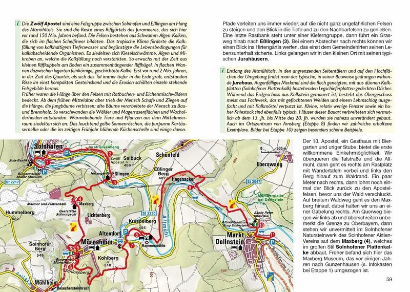 Für jede Etappe auf dem Altmühltal-Panoramaweg gibt es eine zuverlässige Wegbeschreibung, ein aussagekräftiges Höhenprofil und eine detaillierte Wanderkarte mit eingezeichneter Route. Geprüfte GPS-Tracks, die von der Internetseite des Rother Bergverlags heruntergeladen werden können, sorgen für eine reibungslose Navigation. Alle wichtigen Informationen zu Unterkünften, Alternativwegen und öffentlichen Verkehrsmitteln, mit denen sich alle 15 Etappen erreichen lassen, werden übersichtlich präsentiert. Vorgestellt werden außerdem die Sehenswürdigkeiten und Besonderheiten unterwegs.